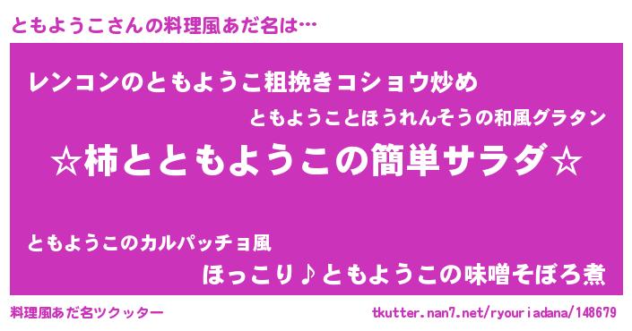| 意味不明あだ名 | 『自称ともようこ』『ペロリンともようこ』 |