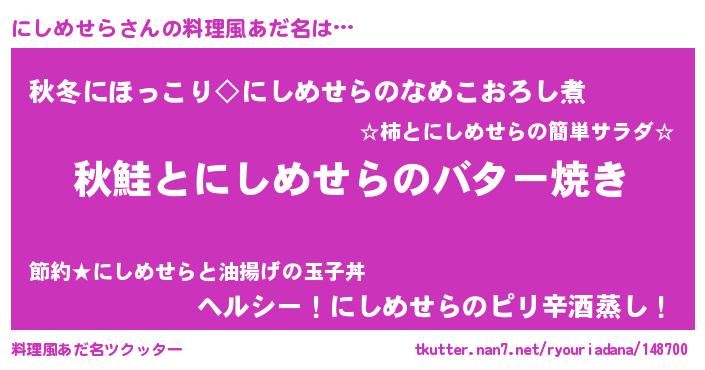 | 意味不明あだ名 | 『永久保存にしめせら』『自称にしめせら』 |