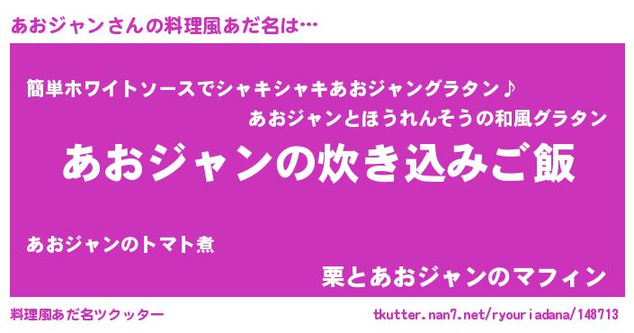 | 胡散臭い通販商品みたいなあだ名 | 『全米が絶賛したサプリメント…その名も「あおジャン」』 |