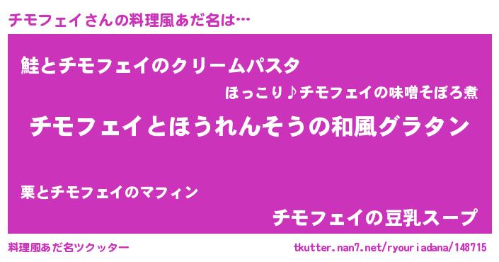 | 可愛いあだ名 | 『チモぷりん』『チモちゅっちゅ』 |
