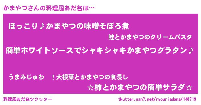 | 女子向けラノベタイトル風あだ名 | 『かまやつ様がみてる』 |