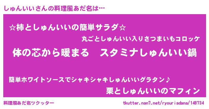 | 意味不明あだ名 | 『しゅんいいフォーエバー』 |