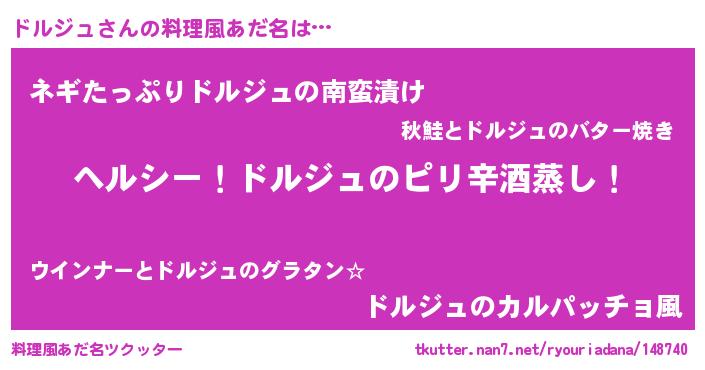 | 男性向けラノベタイトル風あだ名 | 『Re:ドルジュから始める異世界生活』 |