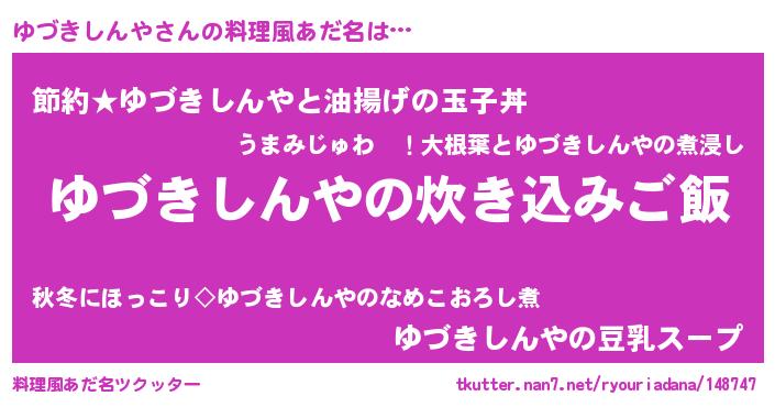 | ピコ太郎風あだ名 | 『ユコ三郎』『ユヅ史郎』『ピユ太郎』 |