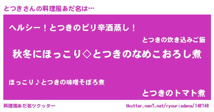 | ヒーロー風カッコイイあだ名 | 『最強戦士トツキ』『慈愛の使者とつき』 |