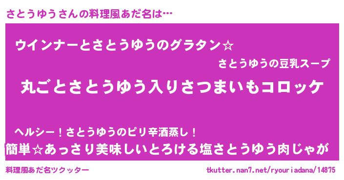| ヘコむあだ名 | 『豆乳』『さとうゆう(笑)』『さとを』 |