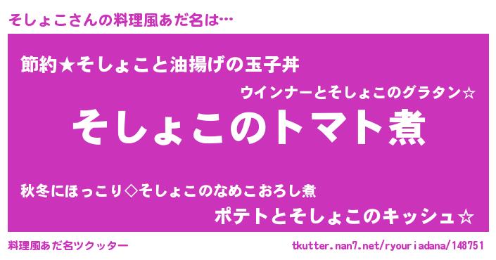 | ピコ太郎風あだ名 | 『ソソ太郎』『ソコ三郎』『ソシ六郎』 |