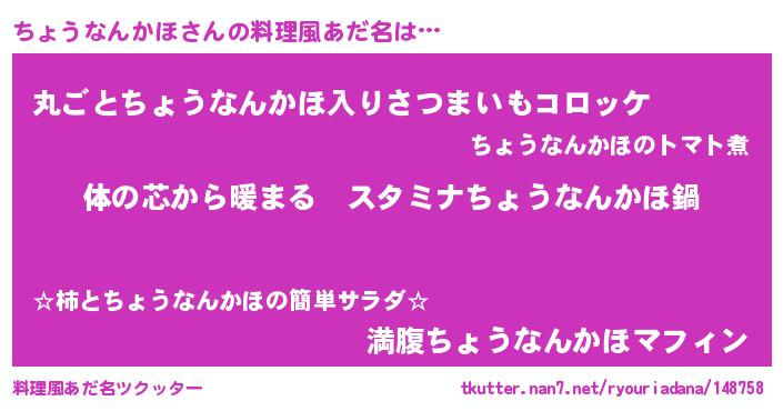 | 意味不明あだ名 | 『ちょうなんかほフォーエバー』 |