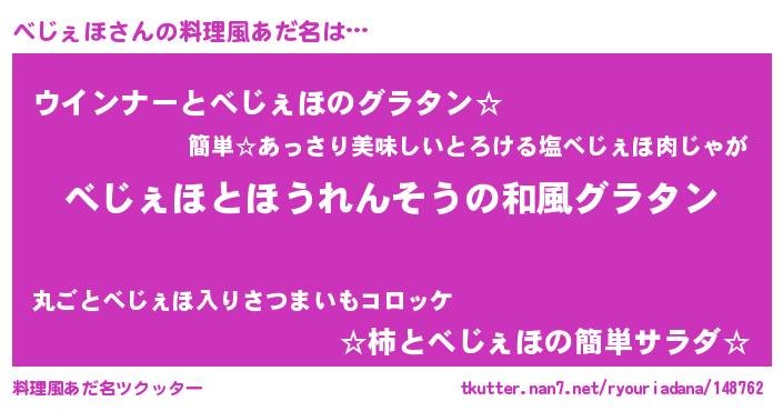 | 女子向けラノベタイトル風あだ名 | 『べじぇほの玉の輿計画!』 |