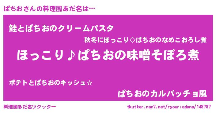 | 男性向けラノベタイトル風あだ名 | 『ぱちおの憂鬱』『魔弾の王とぱちお』 |