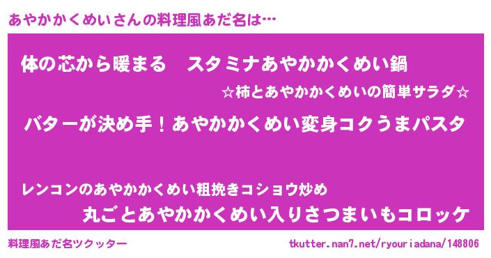 | ヘコむあだ名 | 『なまこ酢』『あやっ子』 |