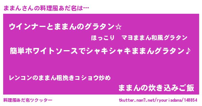 | 女子向けラノベタイトル風あだ名 | 『ままん様がみてる』『ままん伯爵の花嫁』 |