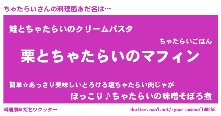| ヒーロー風カッコイイあだ名 | 『正義の使者ちゃたらい』『魔戒騎士チャ』 |