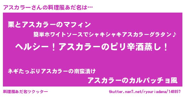 | 意味不明あだ名 | 『自称アスカラー』『ペロリンアスカラー』 |