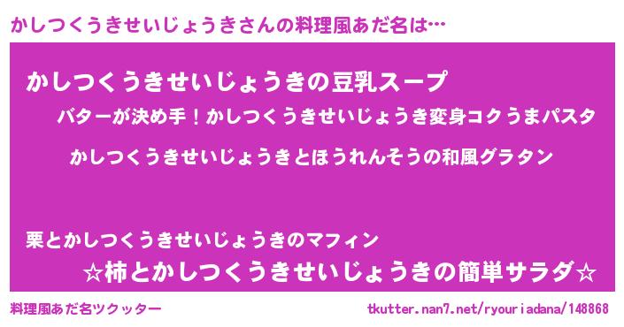 | 男性向けラノベタイトル風あだ名 | 『かしつくうきせいじょうき~年齢イコール彼女いない歴の魔法使い~』 |