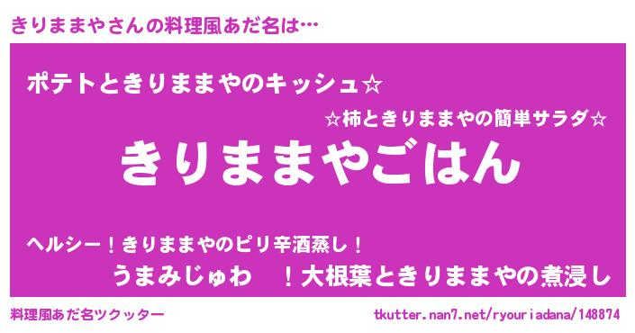 | 男性向けラノベタイトル風あだ名 | 『転生したらきりままやだった件』 |