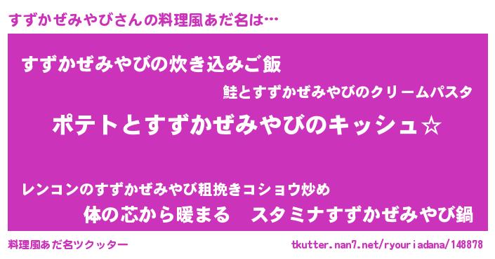 | 女子向けラノベタイトル風あだ名 | 『すずかぜみやびの卵を拾いまして』 |
