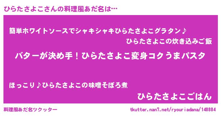 | ポケモン風あだ名 | 『ヒックウザ』『ヒヒラタサヨコ』 |