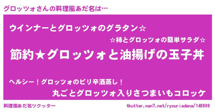 | 男性向けラノベタイトル風あだ名 | 『グロッツォの憂鬱』『緋弾のグロッツォ』 |