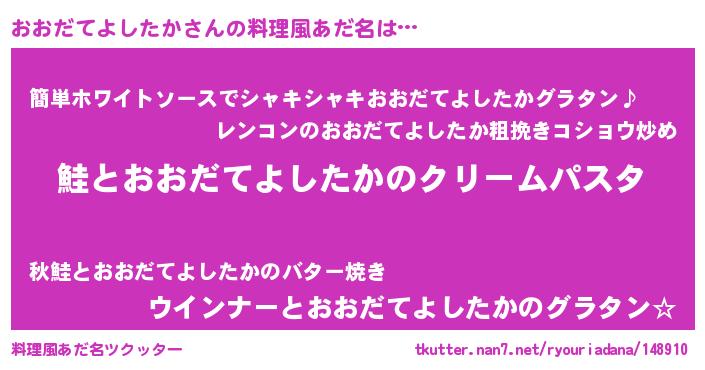 | ポケモン風あだ名 | 『オックウザ』『ヒオオダテヨシタカ』 |