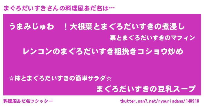 | 女子向けラノベタイトル風あだ名 | 『まぐろだいすきなんてお断りですっ。』 |