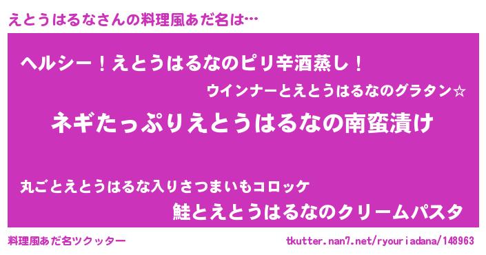 | 恥ずかしいあだ名 | 『プリティーえとうはるな』『えとっちょ』 |