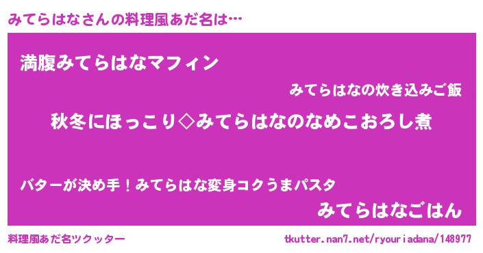 | 男性向けラノベタイトル風あだ名 | 『みてらはなに滅ぼされるだけの簡単なお仕事です』 |