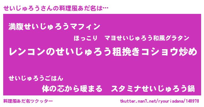 | ヘコむあだ名 | 『せいじゅろう(苦笑)』『牛乳』 |