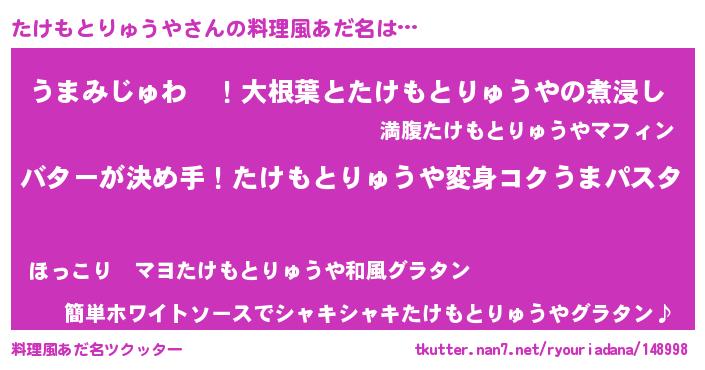 | 肩書あだ名 | 『たけもとりゅうや助手』 |