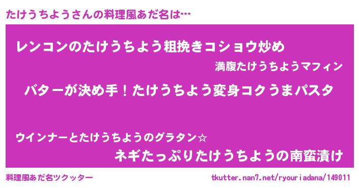 | ヘコむあだ名 | 『たけっふぃ~』『たけうちよう(震え声)』 |