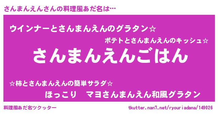 | 男性向けラノベタイトル風あだ名 | 『転生したらさんまんえんだった件』 |