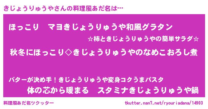 | 意味不明あだ名 | 『住所不定無職きじょうりゅうや(2歳)』 |
