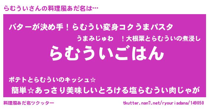 | ヒーロー風カッコイイあだ名 | 『愛の使者らむうい』『ネオラムウイ』 |