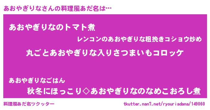 | 意味不明あだ名 | 『住所不定無職あおやぎりな(2歳)』 |