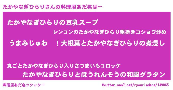 | ポケモン風あだ名 | 『タカヤダネ』『ヒタカヤナギヒラリ』 |