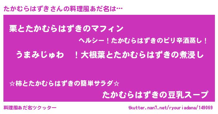 | ヘコむあだ名 | 『酢こんぶ』『たかっちょ』 |