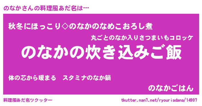 | 欧米人風あだ名 | 『のなか・ステッグマイヤー』 |