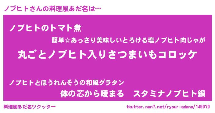 | ヘコむあだ名 | 『なまこ酢』『ノブヒト(笑)』 |