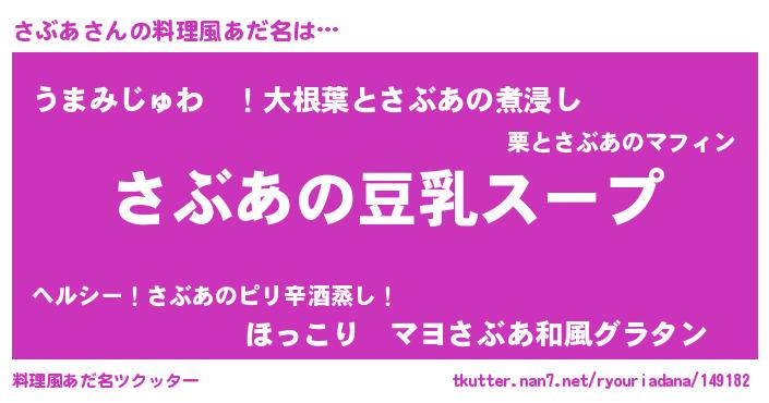| ヘコむあだ名 | 『さぶぷりん』『酢こんぶ』 |