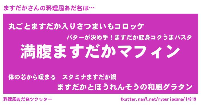 | 男性向けラノベタイトル風あだ名 | 『ますだかという概念が存在しない退屈な世界 』 |
