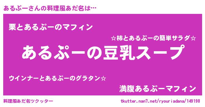 | 胡散臭い通販商品みたいなあだ名 | 『信頼と実績のサプリメント…その名も「あるぷー」』 |