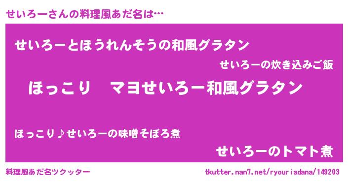 | 意味不明あだ名 | 『住所不定無職せいろー(62歳)』 |