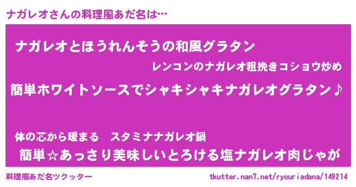 | 男性向けラノベタイトル風あだ名 | 『ナガレオの嫁は女の子じゃないと思った?』 |