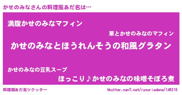 | ヘコむあだ名 | 『かせのみな(爆)』『かせふぇ~』 |