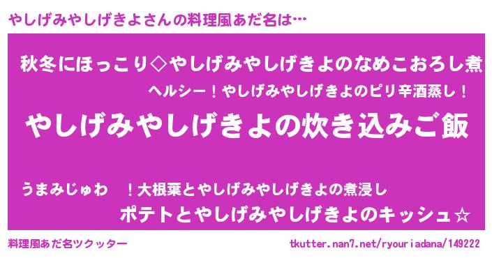 | ヘコむあだ名 | 『やしぷりん』『なまこ酢』 |