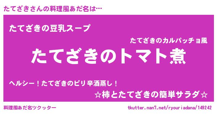 | ヘコむあだ名 | 『たてを』『豆乳』『たてざき(笑)』 |