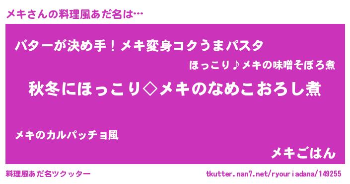 | ヒーロー風カッコイイあだ名 | 『天空の使者メキ』『スーパーメキ』 |