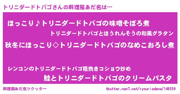 | 男性向けラノベタイトル風あだ名 | 『トリニダードトバゴに滅ぼされるだけの簡単なお仕事です』 |
