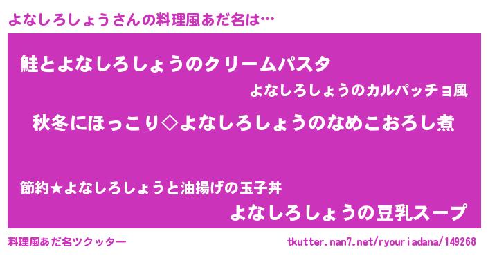 | ヒーロー風カッコイイあだ名 | 『慈愛の使者よなしろしょう』 |