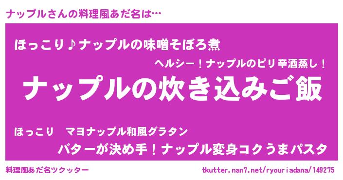 | 意味不明あだ名 | 『ペロリンナップル』『自称ナップル』 |